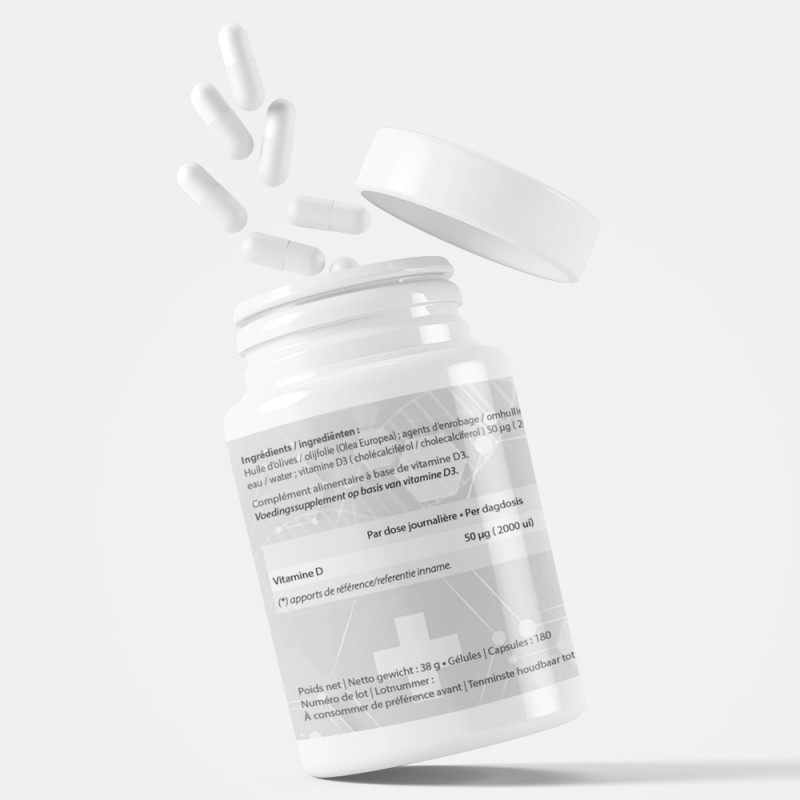 - Vitamine D3 50µg (2000UI) - Huile d’olives